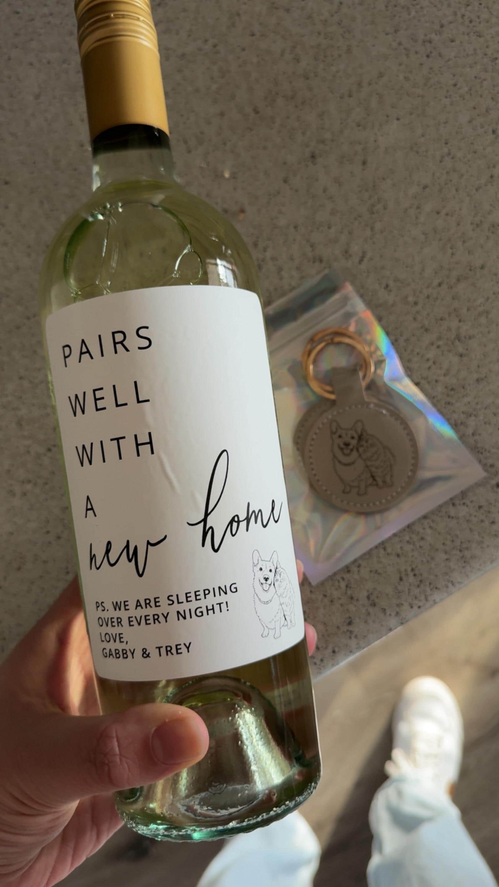 This "Pairs Well With a New Home" label transforms a bottle into a beautiful housewarming gift!