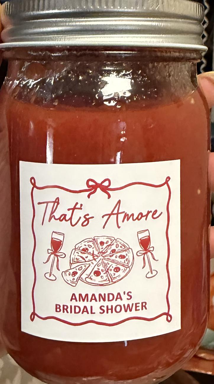 This personalized That's Amore Shooter Label is perfect for whimsical favors for a Italian-themed bridal shower or bachelorette! Your bridal party will love these!