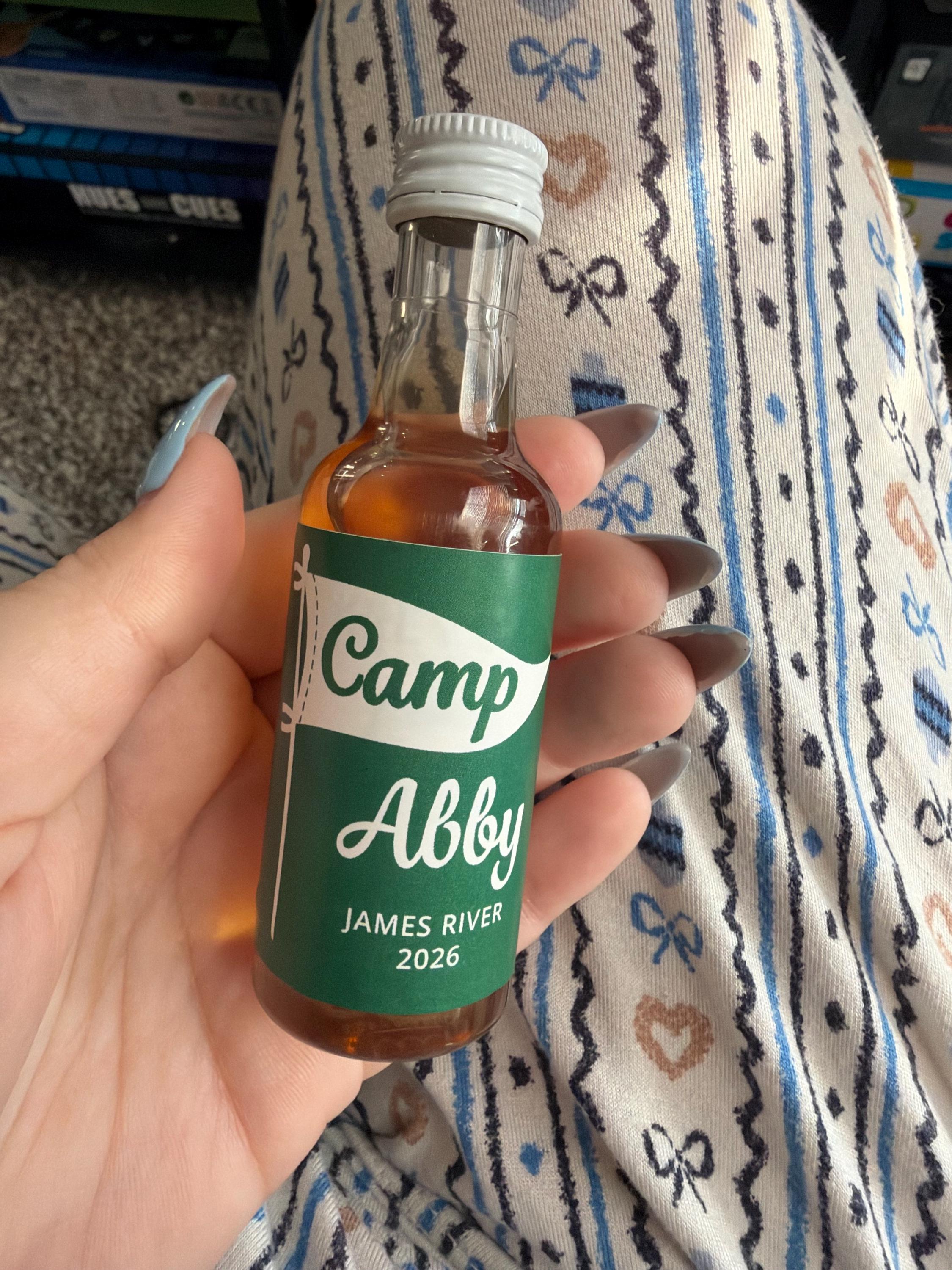 This personalized shooter label is perfect for your camp bachelorette party favors. Your bridal party will love these!